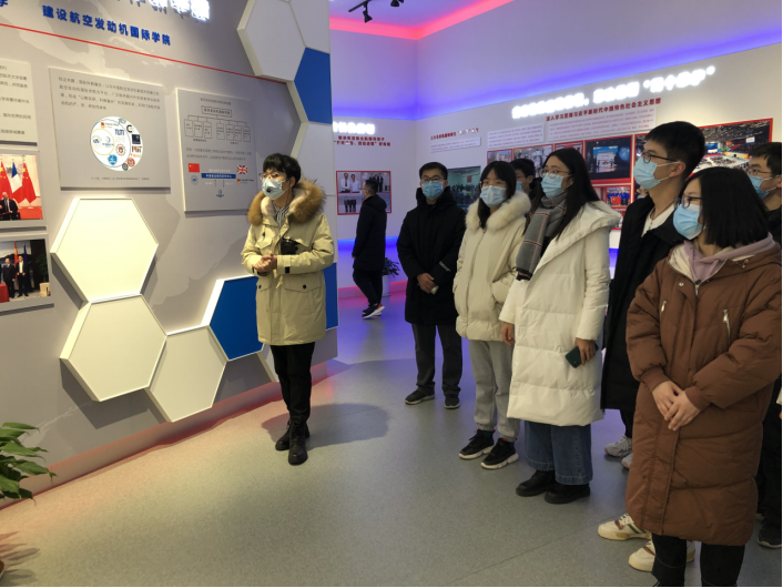 展览共从“学科建设”、“人才培养”、“教师队伍建设”、“科研创新”、“国际交流合作”、“党的建设”六大板块介绍了北航68年来的光辉历程。建校之初,北航的办学条件是相当之艰苦。在路灯下读书,田野中实践是当时北航学子的真实写照。在如此艰苦的条件下,北航人迎难而上创下无数辉煌时刻。截至2017年,北航在第四轮学科评估中已有7个学科入选国家“双一流”建设学科。2019年5月央视专栏更是以青春的印记为题对北航人激情燃烧的青春岁月做了真题报道,整个报告时长总计约4分钟。通过解说员的讲解,结合详实的图文资料、视频等,让同学们身临其境般地重温了北航从1952年到2020年所走过的光辉岁月,回望了初代北航人敢为人先、艰苦奋斗的勇气和爱国担当,感受了当代北航人勇立潮头、与祖国同命运,向国际化目标迈进的坚定步伐。