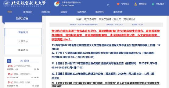关于地方选调政策流程,主持人郝黎明强调搜集信息的几个途径,比如在公务员信息网站上或者中公教育这类的网站上搜寻一些选调生的相关信息。同时,在北航的招生就业信息网站://career.japanwuma.net/同样也有各省、地方选调生、公务员招聘公告汇总。此外,主持人还强调要多去一些选调生的招生宣讲会, 宣讲完可能直接进行面试。