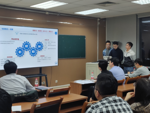 专职辅导员石存老师开场,强调了本次优秀班集体答辩对大家的积极作用,鼓励各位参加答辩的班委代表认真对待、展现班级风采,随后公布各班级的答辩顺序,宣布答辩正式开始。