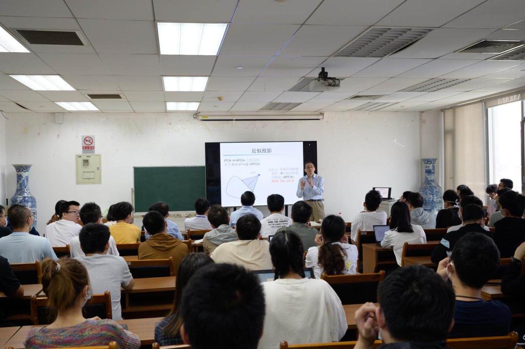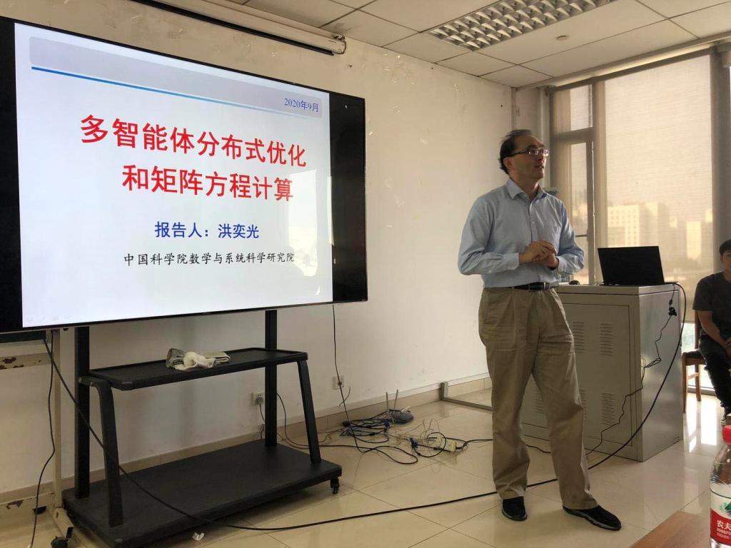 在讲座中,洪奕光研究员着重从“研究背景”和“研究成果”两方面介绍其团队。首先,洪研究员向大家说明了决策、优化和博弈问题在数学和控制领域的重要性和研究意义。其次,洪研究员向大家阐述了研究过程中面临的三大挑战:多目标和多约束、决策控制一体化和针对非光滑(不可微分)问题需采用新的数学工具。接下来,洪研究员从分布式凸交计算、近似投影、带约束的优化、信息物理系统的优化控制一体化和分布式求解微分方程五个方面向大家详细介绍了近年来其团队取得的优秀成果。另外,洪研究员还向大家分享了“人工智能不等于机器学习”、“从控制的角度去理解优化问题”等观点。
