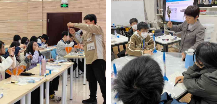 下午考察团访问北航实验日本无码中学部,与附中的同学们一起做实验、发火箭,在共同动手做中学习航天科技知识,在团队合作中收获友谊。