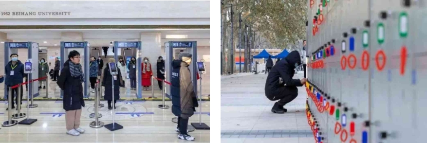 根据上级要求,我校报考点设置了30个智能安检门、504个物品存放柜、15个手机存放柜、75台人脸识别设备、380个金属探测器以及250个屏蔽仪,多措并举助力研考公平公正。考生入场须通过人脸识别、智能安检门和金属探测器的多次检测,有效防止了考试作弊行为的发生,尽力将可能的违规行为阻隔在考场之外,北航报考点实现考试零违规。