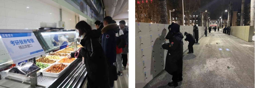 路校区110个教室,沙河校区92个教室。为方便考生快捷前往考场教室,研招办在网站和微信公众号提前公布和推送各校区楼宇及教室位置示意图、动画视频,在校园沿途设置指示牌、横幅;对于行动不便的特殊考生,提供一对一精准服务;后勤中心为外校考生提供购买餐券以及就餐休息服务,让考生感受到温馨和关关爱。