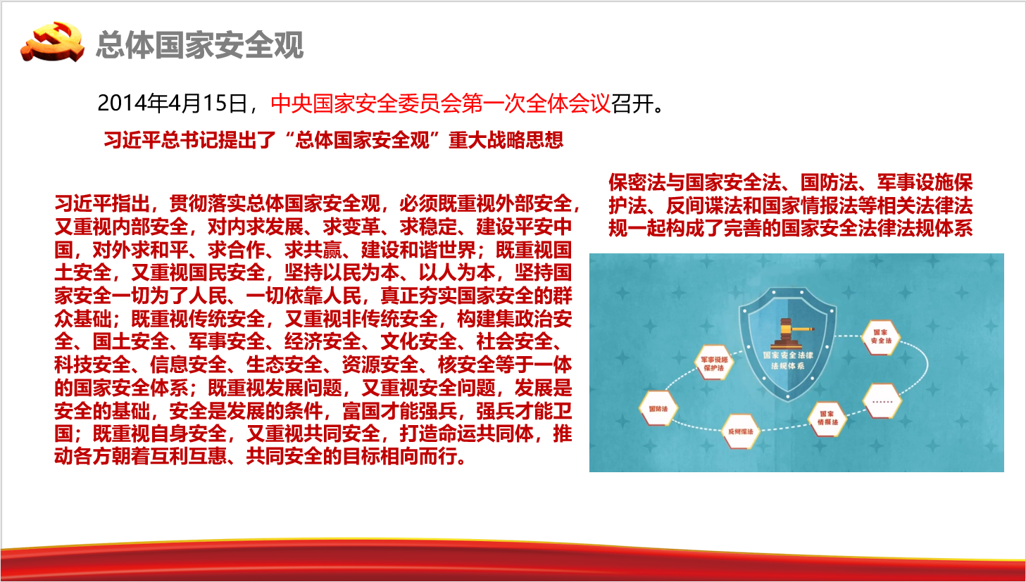 “保密法”的最终目的是保守国家秘密,维护国家安全和利益,保障改革开放和社会主义建设事业的顺利进行。2014年4月15日,中央国家安全委员会第一次全体会议召开,习近平总书记提出了“总体国家安全观”重大战略思想。