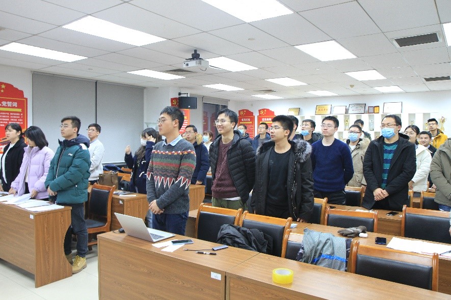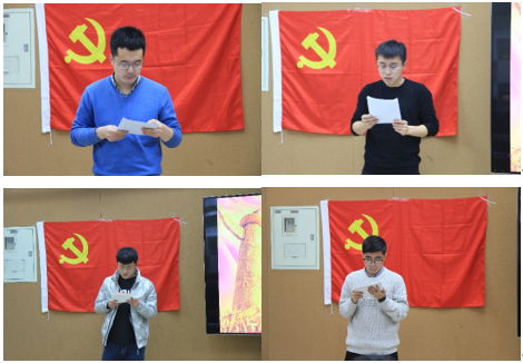 会议开始,全体起立奏唱国际歌。之后孟岩、刘冬、牛禹、杨旭和王润琪等五位同志依次宣读转正申请书,从思想政治、学习以及生活等方面汇报了这一年预备期内的基本情况,同时也表明了自己对成为优秀的正式党员的坚定决心。