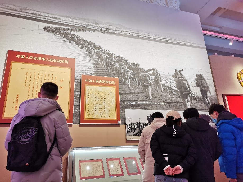 党员同志们认真参观了展厅内按照当年历史事件发生时间排序的几部分内容,包含序厅、“正义担当 决策出兵”、“运动歼敌 稳定战线”、“以打促谈 越战越强”、“实现停战 胜利归国”、“抗美援朝战争胜利的伟大意义和历史贡献”、结束语七部分。此外,还有“中国人民志愿军思想政治工作”、“后勤保障工作”、“伟大的抗美援朝运动”、“最可爱的人”、“不忘初心、牢记使命、永远奋斗”五个专题,能够让参观者全方面地了解抗美援朝战争史。展览充分展示了中国共产党领导抗美援朝战争的光辉历程和宝贵经验,大家纷纷被伟大的抗美援朝精神的丰富内涵和时代价值所感染。