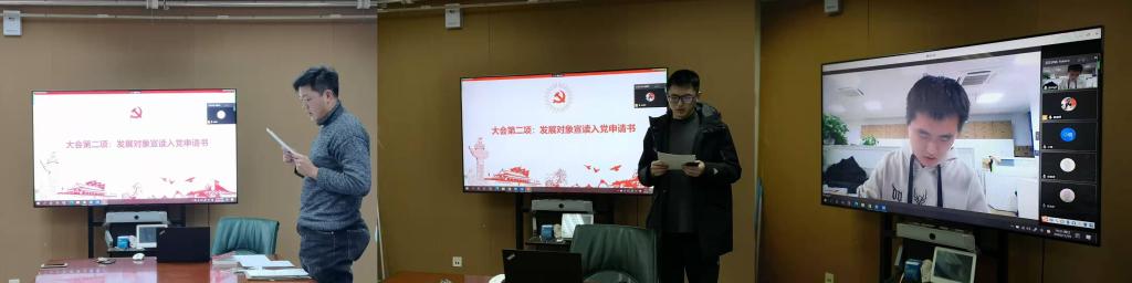 会议开始,全体起立,奏唱国际歌。随后,赵哲、周慕航、乔世昌等同志按顺序宣读入党志愿书,结合实际生活、学习和工作,从对党的认识、入党动机和理想信念等方面向党组织汇报。