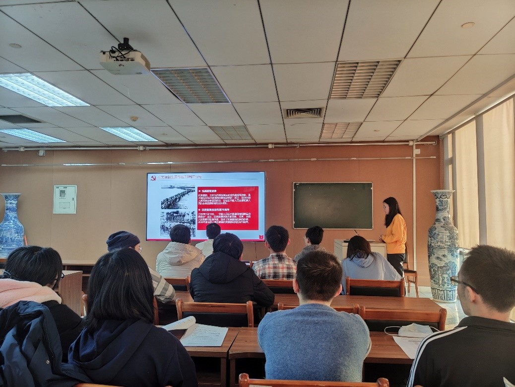 童雅静同志以《纪念抗美援朝70周年》为主题,首先从抗美援朝出国作战内容介绍了作战的背景和各个时间节点的大事件。最后从抗美援朝的意义方面并结合习近平总书记在纪念中国人民志愿军抗美援朝出国作战70周年大会上讲的五个“经此一战”讲述了抗美援朝战争胜利带给中国人民的重要意义。抗美援朝战争以“打得一拳开,免得百拳来”的无畏气概,以敢于斗争、敢于胜利的精神,毅然抗美援朝、保家卫国,打破了美帝国主义不可战胜的神话。极大鼓舞了我们广大党员同志,提高了我们的民族自信。