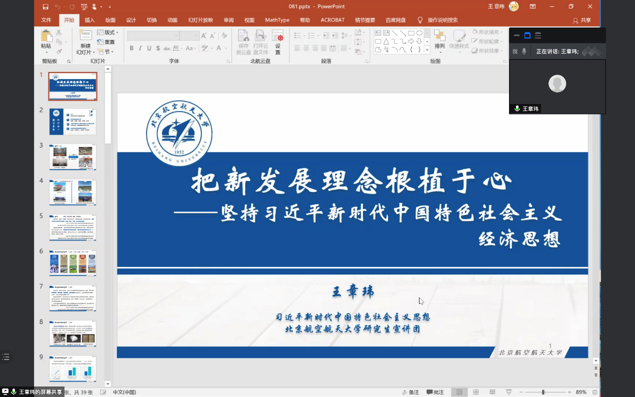 研究生宣讲团讲师王章玮同学为党支部全体成员进行题为《把新发展理念根植于心——坚持习近平新时代中国特色社会主义经济思想》的报告,党支部全体党员和积极分子共计15人参与了本次学习日活动。