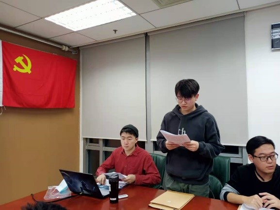 最后是支部书记讲党课环节。李清泽同志为我们讲述了“十四五”规划的主要内容和嫦娥五号发射的主要情况。