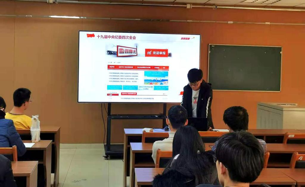 SY2003第七党支部于11月11日下午14:00在E706开展“反腐倡廉每季一课”学习日活动,由支部书记史媚颜同志主持、崔根同志主讲,支部的11名党员和11名入党积极分子参加了本次学习日活动。
