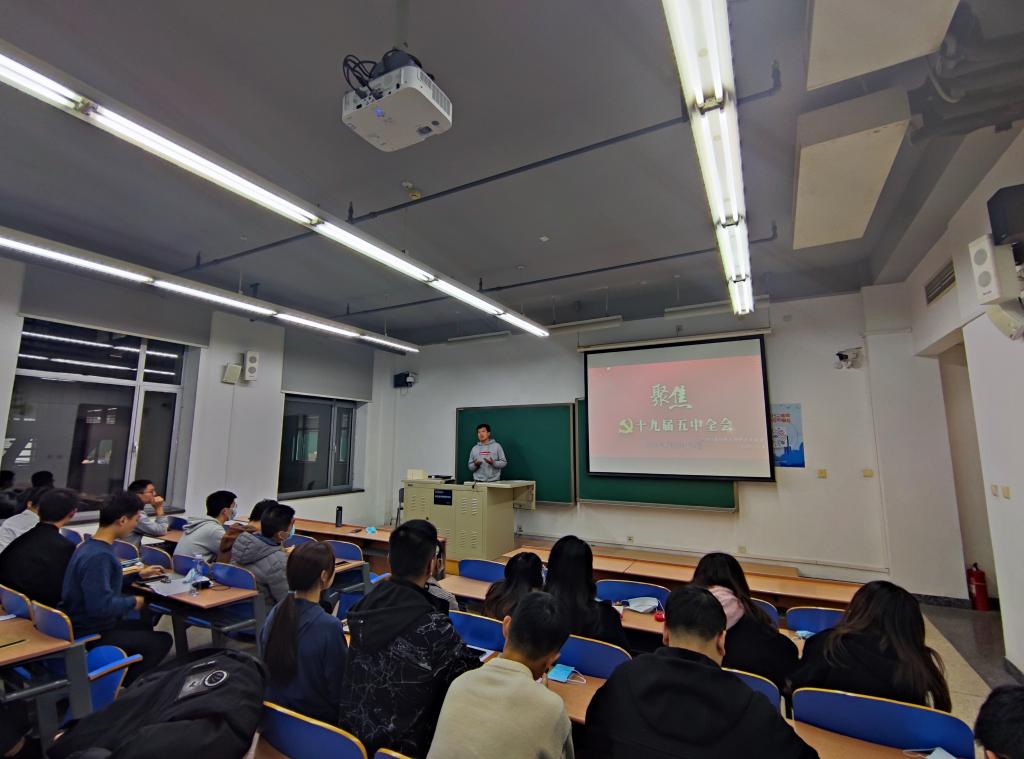 随后,由支委李光耀同志以微党课形式带领在场人员开展学习日活动,主题为学习贯彻党的十九届五中全会精神。李光耀同志从十九届五中全会的召开和会议概况出发,从会议形成的1个重要判断、我国发展环境面临的深刻复杂变化、决胜全面建成小康社会取得的10方面决定性成就、“十四五”时期经济社会发展的6方面主要目标以及实现奋斗目标的12方面具体举措等方面,全面讲解了十九届五中全会的要点精神。微党课结束后,全体人员就学习感想和心得体会互相交流。