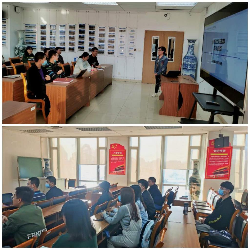 研究生党建辅导员张丽琴主持并主讲,2020级研究生党支部的30余名支部委员参加了会议。