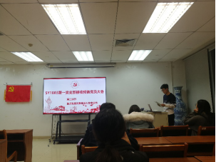 2019年11月15日晚,SY1803第一党支部在新主楼E706召开预备党员接收大会。党支部书记李源同志负责主持会议,会议应到17人,实到16人,其中到会有表决权的党员12人,超过本支部有表决权党员的半数,符合开会要求。