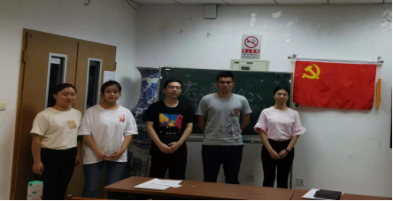 会议的最后,党支部全体成员在党旗前合影,SY1903第三党支部将始终不忘初心,遵守党的纪律,维护党的章程,发挥党员的先进带头作用,并希望党支部早日迎来新鲜的血液。