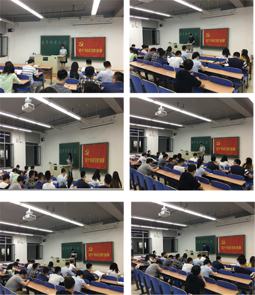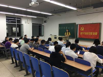 BY1603党支部于2018年5月9日晚19点40分在新主楼D215召开了党支部大会,本次大会的主要议题是预备党员发展。会议由党支部书记季宁同志主持,党支部委员苏齐莹,陈巍,冯禹等负责相关组织和安排工作。此次会议应到人数27人,实到20人,其中正式党员18人,预备党员2人,积极分子6人。