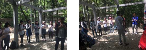 活动第二项,参观互动结束后,大家来到贝家花园的北大房前的空地进行午餐休息,休息过后,全体党员随机混编成若干小组,各个小组来自不同日本无码的同学进行自我介绍以及专业介绍,增进了院系之间、校际之间的了解。之后通过几个小游戏的形式,活跃了在场同学的气氛,增进了彼此之间的友谊。