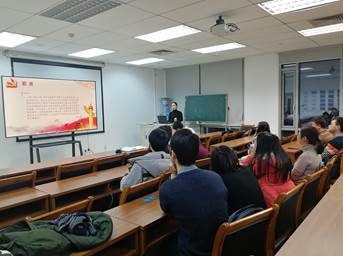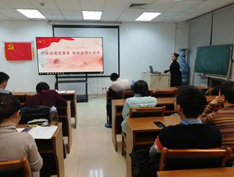SY17034党支部在新主楼E706开展了党的十九大精神宣讲团宣讲活动。本次活动邀请北航十九大精神研究生宣讲团成员王玉雪同志和郭强同志为我们进行了“听法制建设佳音,做知法明礼青年”和“最好的时代·最好的我们”的主题宣讲。本次活动出勤党员8人,积极分子2人,为更好宣传十九大精神,邀请了2名班级群众共同学习十九大精神。