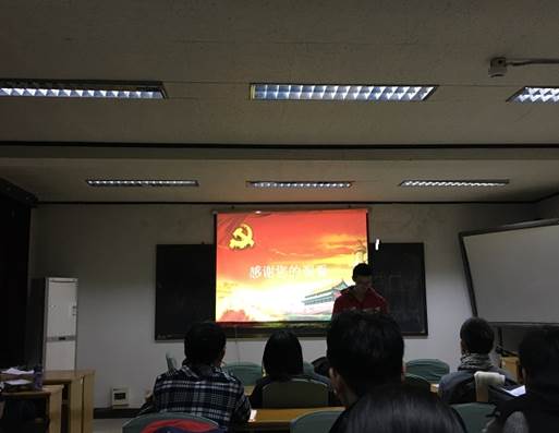 之后,SY17042党支部书记王子贤同志分享他的十九大精神学习体会。王子贤同志认为,党员应当把握十九大学习方法,学生党员应从十九大的精神面貌来学习。
