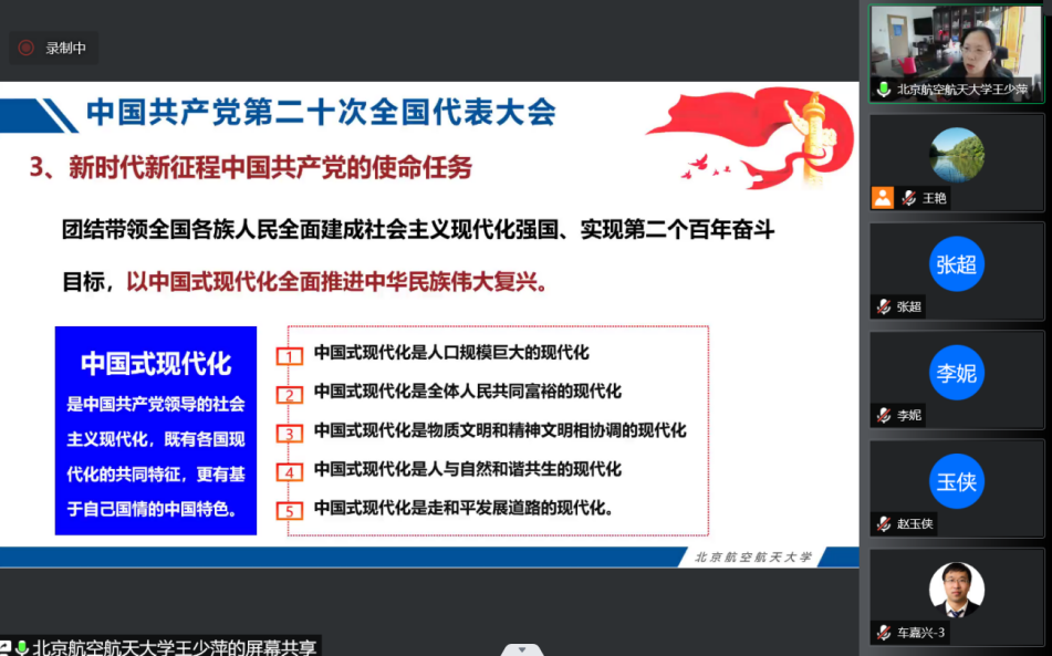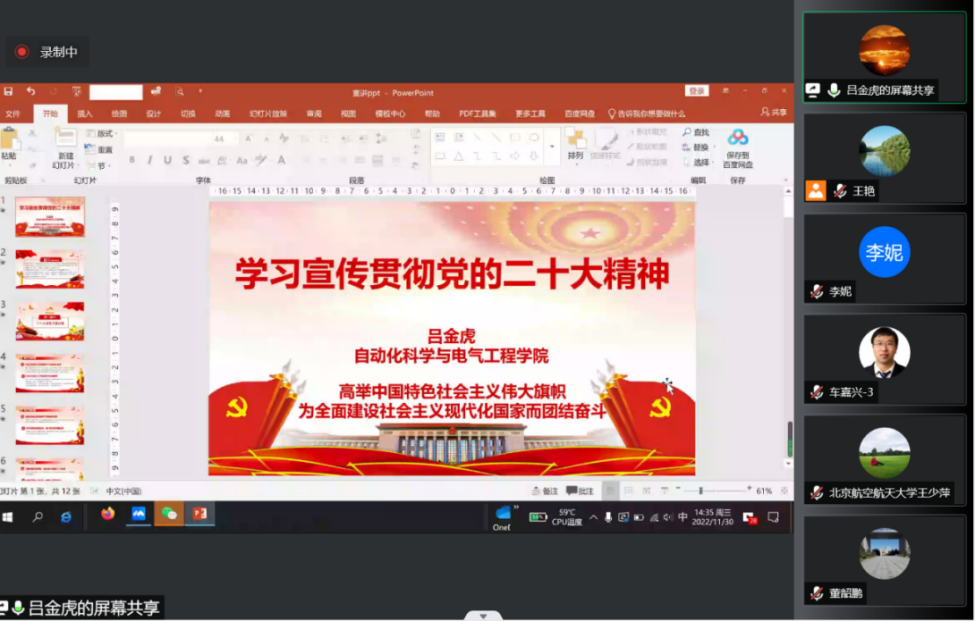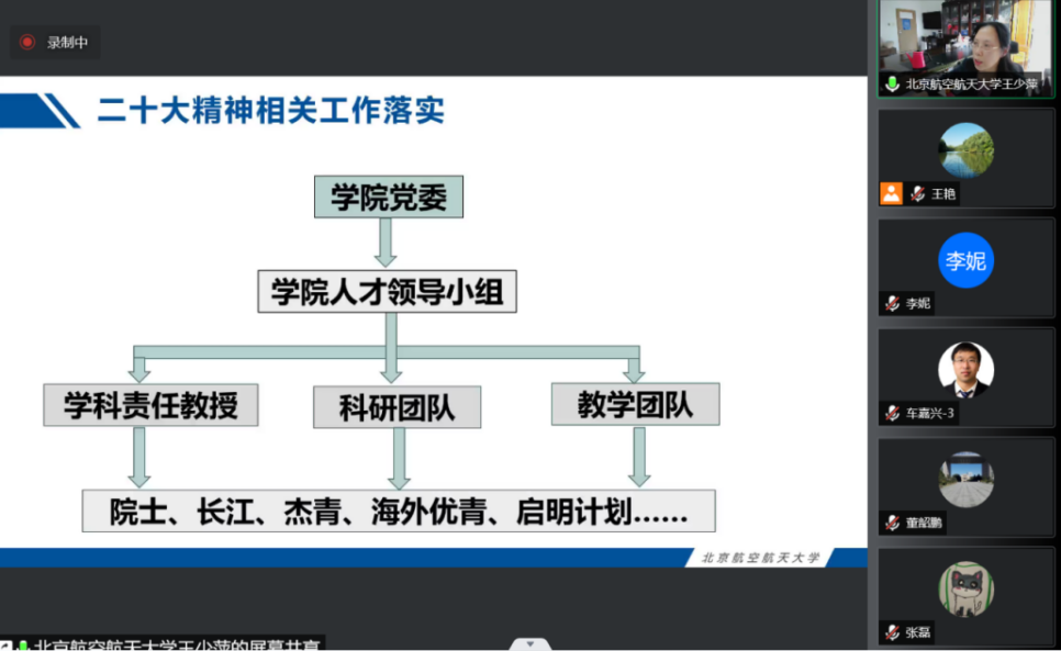 主要负责人给全体教师宣讲二十大精神,以实际行动带动广大干部师生的学习。本次学习采用线上腾讯会议方式开展。
