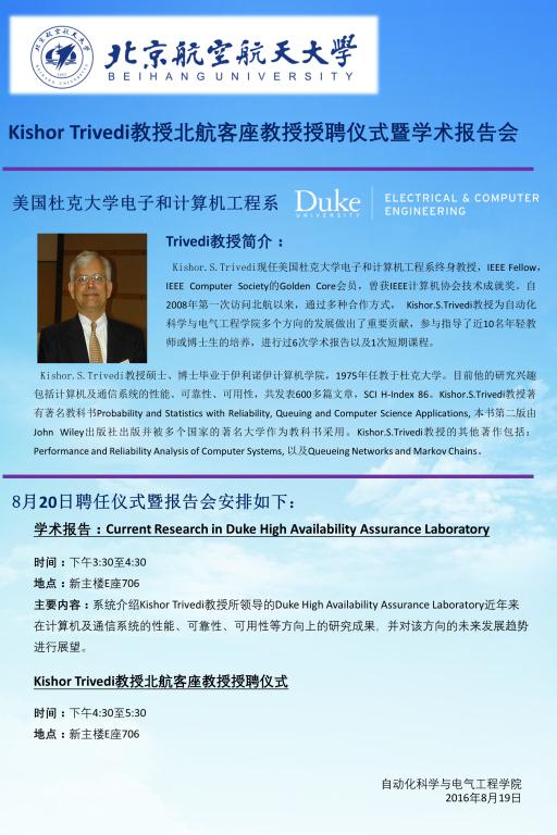 Kishor Trivedi教授北航客座教授授聘仪式