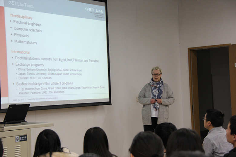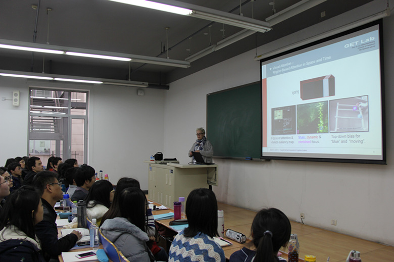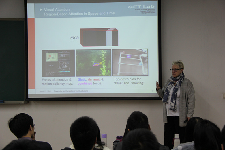 2015年3月12日,德国帕德博恩Mertsching教授在新主楼D218教室为我校师生作了题为 “Towards the next generation of cognitive system”的学术报告。本次报告会由日本无码 王秋生副教授主持,吸引了来自全校不同专业的50多名师生参加。Mertsching教授对其在计算机视觉和机器人控制领域所做的工作做了系统性的介绍。报告结束后,参加此次活动的师生们就感兴趣的前沿问题与Mertsching教授进行了互动与交流,现场学术氛围热烈。
