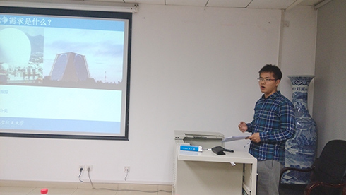 接着是硕士研究生詹琨做宣讲,他主要研究信号滤波技术及算法。此次报告会詹琨主要介绍了基于雷达信号的导航和制导中的滤波技术。首先他简要介绍了当前滤波技术的发展现状,重点介绍了近几年流行的联合跟踪和分类技术以及自己做提出的粒子自整定的混合无迹卡尔曼滤波算法,并向大家展示了算法的优越性。