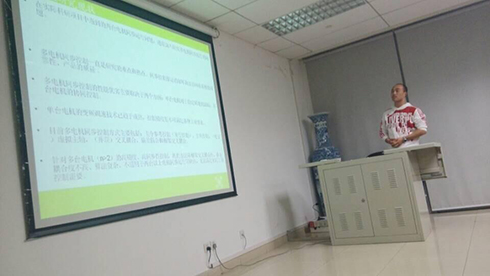 然后为大家作报告的是张贵铭硕士,他的研究方向包括伺服电机的驱动及应用和工业自动化控制。报告过程中,他首先建立了以永磁同步电动机(PMSM)矢量控制系统为基础,采用相邻交叉耦合控制策略的多电机同步控制模型,将智能PI算法应用于同步控制器和PMSM的速度环。对于两台以上电机的同步控制,他采用了相邻交叉耦合控制策略,耦合度高,鲁棒性好。经过他的研究,得出智能PI算法能根据系统运行状态实时改变调节器结构和参数,缓解了同步控制器中传统PI控制导致转速同步性和平稳性的矛盾,适用于工业控制。他通过展示实验现象的对比结果,使得结论更加直观。