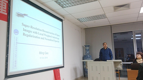 ,他带来了题为《权重异性和标准稀疏的空间图像超分辨率重建》的报告。首先,他首先介绍了空间图像处理的原理,和提高分辨率的要求及难度,再提出权重异性和标准稀疏的空间图像超分辨率重建的具体方法,并通过对比,仿真以及实际测试方式作了具体展示,并对未来前景作了展望。