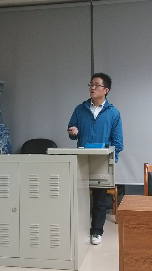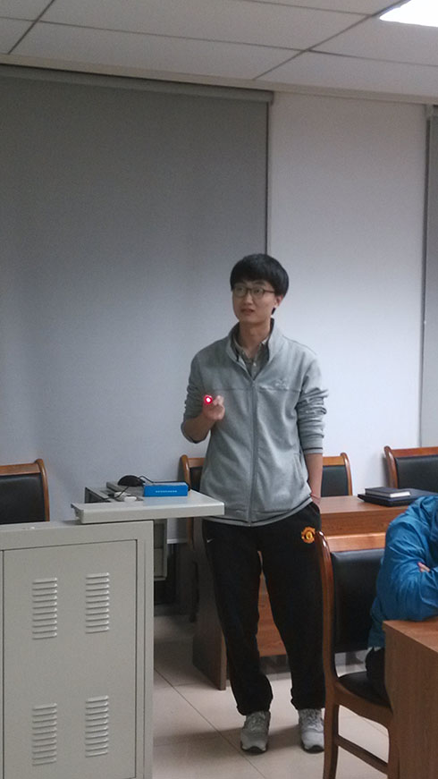 接着由硕士研究生桑云做宣讲。桑云研究生期间主要做的是对先进飞行器的智能决策的研究。本次报告他以第七届国际空中机器人大赛为背景介绍了自己在实时航路规划中的研究,并为大家展现了比赛现场的视频,引起了在场学生的极大兴趣。