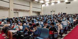 路校区10月1日、3日的国庆观影活动。整个观影活动共有《我和我的父辈》、《平行森林》、《1921》三部影片在学术交流厅和咏曼剧场放映,在两校区分别设有六个场次,总计有来自全校各个院系的1950人次参与了此次观影活动。